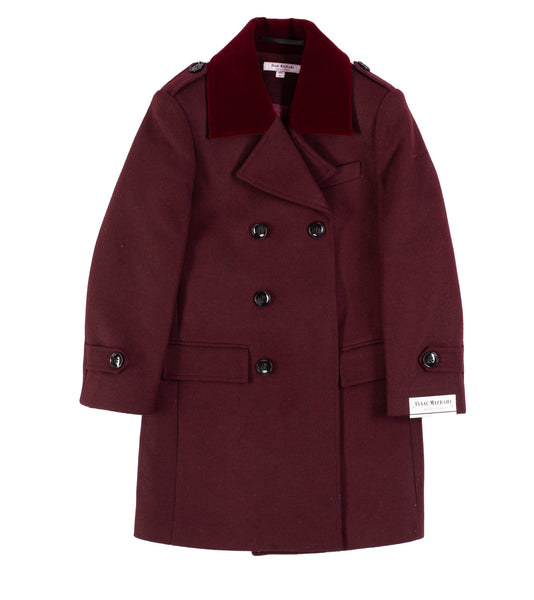Boy's Double Breast Coat W/ Velvet Collar- Burgundy