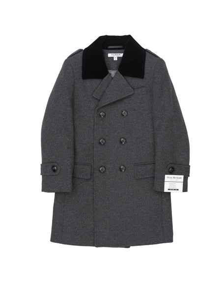 Boy's Double Breast Coat W/ Velvet Collar- Charcoal